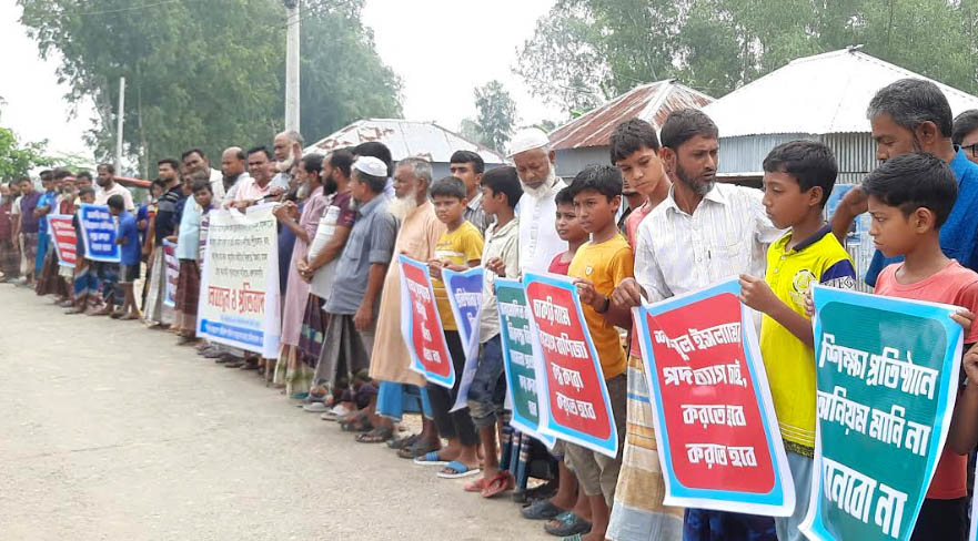 নাটোরের সিংড়ার আয়েশ বছিরুল আলিম মাদ্রাসার অধ্যক্ষ মাওলানা মোঃ শামসুল ইসলামের নিয়োগ বাণিজ্য, অর্থ আত্মসাৎসহ বিভিন্ন অনিয়মের প্রতিবাদ এবং শিক্ষা বোর্ড কর্তৃক অনুমোদিত বর্তমান নবগঠিত কমিটি বাতিলের লক্ষ্যে মিথ্যা মামলা প্রত্যাহার করে কমিটি পূর্ণঃবহালের দাবিতে মানববন্ধন ও প্রতিবাদ সমাবেশ করেছে শিক্ষার্থী, অভিভাবক ও স্থানীয় জনসাধারণ।