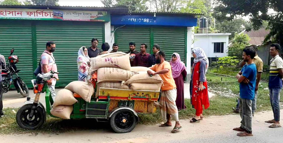 পরে নির্বাহী কর্মকর্তা মোঃ উজ্জল হোসেন সহকারী কমিশনার (ভূমি) মোছাঃ খাদিজা খাতুন এবং উপজেলা মহিলা বিষয়ক কর্মকর্তা মোসাঃ নিলুফার ইয়াসমিনকে সেখানে পাঠিয়ে এসব চাল উপজেলায় নিয়ে আসেন।