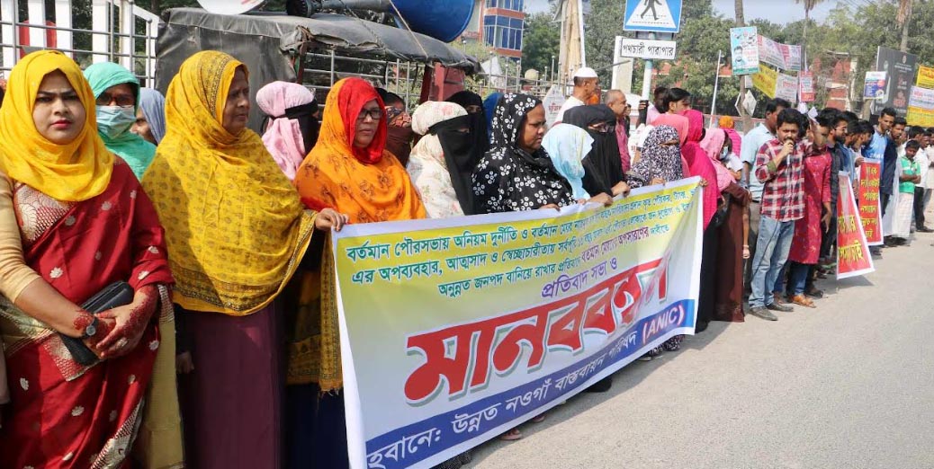 অনিয়ম ও দুর্নীতির প্রতিবাদে নওগাঁ পৌরসভার মেয়র নজমুল হক সনির অপসারণের দাবিতে প্রতিবাদ সভা ও মানববন্ধন অনুষ্ঠিত হয়েছে।