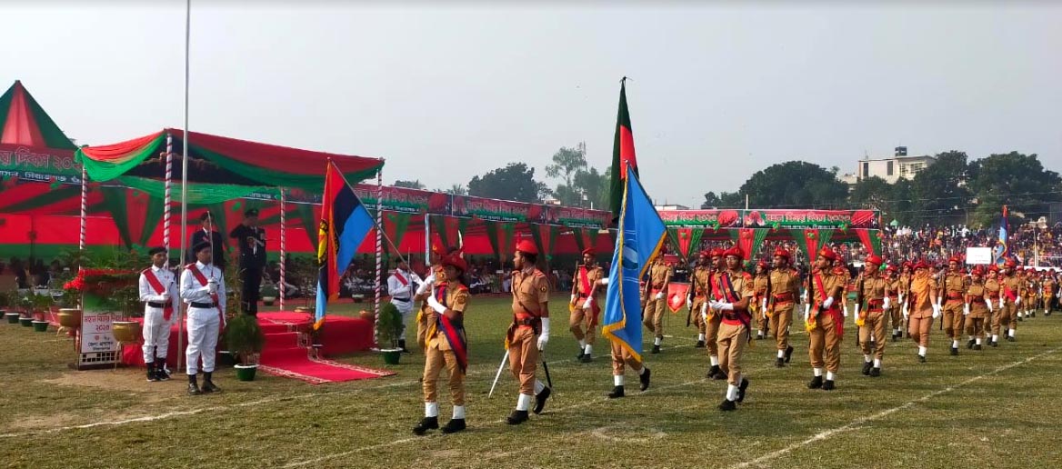 আজ মহান বিজয় দিবস- উদযাপন উপলক্ষে জেলা প্রশাসন কর্তৃক আয়োজিত সিরাজগঞ্জের শহীদ শামসুদ্দিন স্টেডিয়ামে আনুষ্ঠানিকভাবে জাতীয় পতাকা উত্তোলন, ফেস্টুন ও শান্তির প্রতিক পায়রা অবমুক্তকরণ, সম্মিলিত কুচকাওয়াজ, শারীরিক কসরত প্রদর্শন ও পুরস্কার বিরতণী অনুষ্ঠান অনুষ্ঠিত হয়েছে।