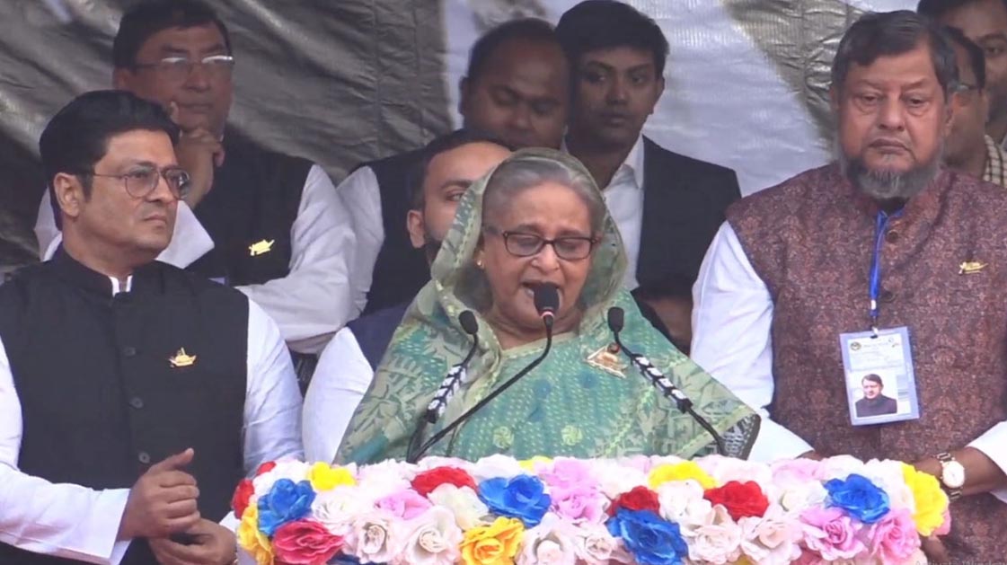 প্রধানমন্ত্রী বলেন, এখন তারা (বিএনপি) নির্বাচন বানচাল করতে চায়, কেন নির্বাচন বানচাল করবে? আওয়ামী লীগ ক্ষমতায় আছে বলেই আজকে উন্নয়ন হয়েছে। ’৭৫-এর পর যারা ক্ষমতায় এসেছিল, তারা ক্ষমতায় এসেছিল অস্ত্র হাতে নিয়ে ও সংবিধান লঙ্ঘন করে... তারা মানুষের ভাগ্য গড়েনি।