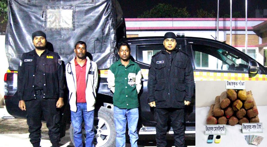 এরা হলেন, রংপুর জেলার সদর উপজেলার তাজহাট টিবি হাসপাতাল এলাকার সাজু মিয়ার ছেলে বিপ্লব মিয়া (৩৪) এবং শফিউল ইসলামের ছেলে জাহাঙ্গীর আলম (৩৬)। জব্দ করা গাঁজার মূল্য প্রায় ১০ লাখ টাকা। র্যাব এ সময় মাদক পরিবহনের কাজে ব্যবহৃত একটি পিকআপ, একটি মোবাইল ফোন ও নগদ সাড়ে তিন হাজার টাকাও জব্দ করে।