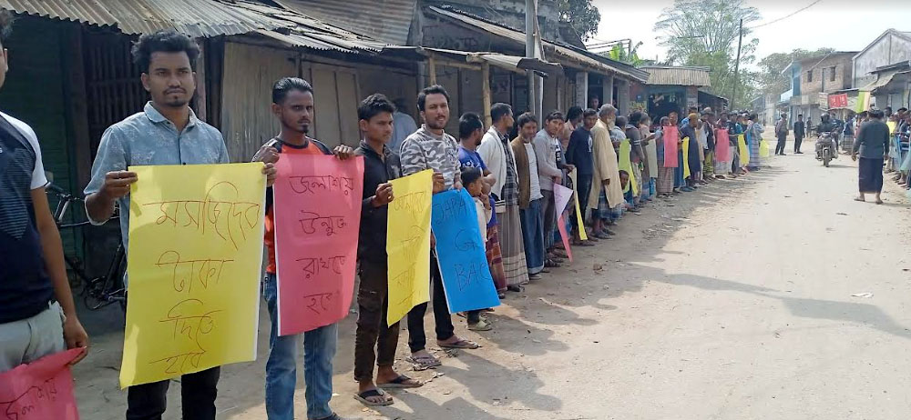 সকাল ১১টার দিকে খনি সংলগ্ন পাতরাপাড়া মোড়ে কয়লাখনির ভূগর্ভ থেকে কয়লা উত্তোলনে ক্ষতিগ্রস্ত কয়েকটি গ্রামের সহস্র নারী ও পুরুষ গ্রামবাসী জড়ো হয়ে বিক্ষোভ, প্রতিবাদসহ ঘন্টাব্যাপী মানববন্ধন কর্মসূচি পালন করেন।