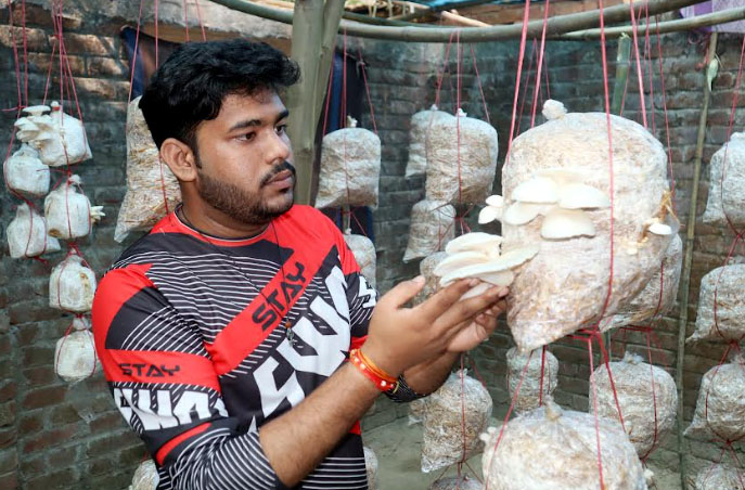 ফুলবাড়ীতে পরীক্ষামূলক মাশরুম চাষে সফল শিক্ষার্থী রাকেশ সরকার প্লাবন