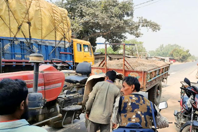 বৃহস্পতিবার (১৪ মার্চ) সকালে মহদিপুর গ্রামে বালু উত্তোলনের সময় তার ট্রাক্টর আটক করেছে গ্রাম পুলিশ।