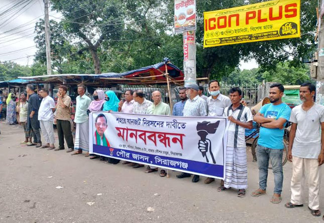 আজ রবিবার ৩০ শে জুন সকাল ১০ টার  দিকে সিরাজগঞ্জ বাজার স্টেশন চত্ত‌রে এই মানববন্ধন অনুষ্ঠিত হয়।