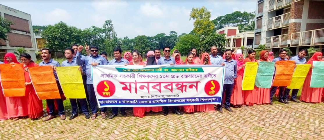 বৃহস্পতিবার সকালে ঝালকাঠি জেলার প্রাথমিক সহকারি শিক্ষকদের ব্যানারে প্রাইমারী টিচার্স ট্রেনিং ইনস্টিটিউটের সামনে এ কর্মসূচি পালন করা হয়।