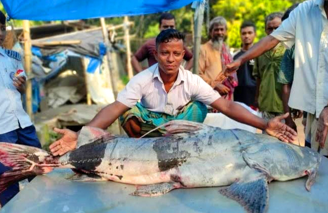 সিরাজগঞ্জ যমুনা নদীর জলে এক মৎস্যজীবীর জালে ধরা পড়ল প্রায় এক মণ ওজনের বাঘাইড় মাছ। যদিও এই মাছকে মহাবিপন্ন হিসাবে ঘোষণা করেছে বাংলাদেশ সরকার।