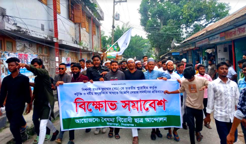 ভারতে পুরোহিত কর্তৃক হযরত মুহাম্মাদ (স.) এর বিরুদ্ধে কটুক্তি এবং বিজেপি নেতার সমর্থন করার প্রতিবাদে রোববার উল্লাপাড়ায় ছাত্র-জনতার উদ্যোগে পৌর শহরে এক বিক্ষোভ মিছিল ও প্রতিবাদ সমাবেশ অনুষ্ঠিত হয়।